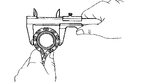 b. Using a vernier calipers, measure the camshaft timing gear diameter with the chain.