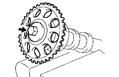 CAUTION: Be sure not to turn the camshaft timing gear to the retard angle side (to the right angle).