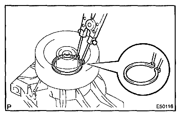 b. Using a snap ring expander, install a new snap ring with the chamfered side facing up.