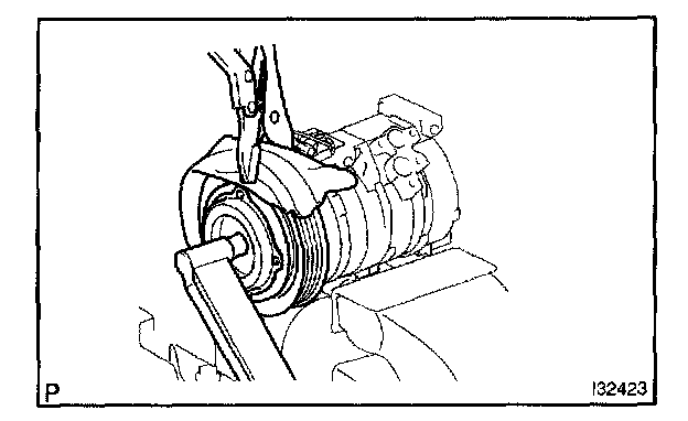 d. Using a snap ring expander, remove the snap ring and magnet clutch rotor.