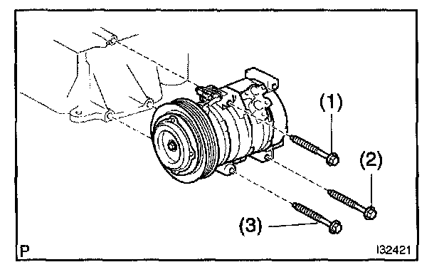 b. Remove the 3 bolts and compressor and magnetic clutch.