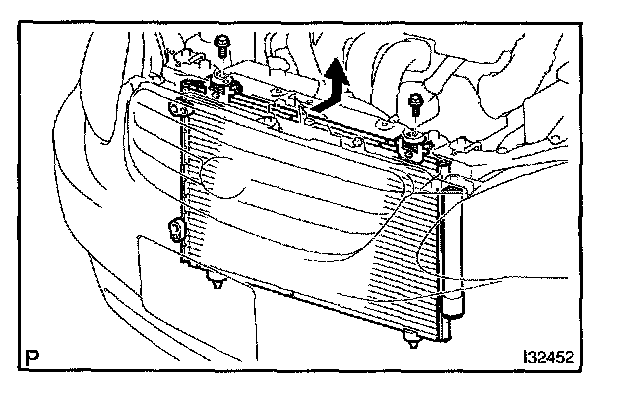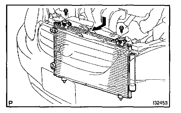 c. Slide the upper part of the radiator assy rearward to remove the w/receiver condenser assy.