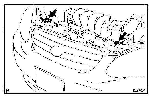 a. Remove the 2 bolts and 2 radiator upper supports.