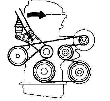 a. Turn the drive belt tensioner clockwise to relieve tension on the belt, and then remove the belt.