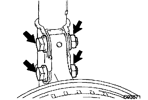 b. Remove the 2 bolts, nuts and front axle assy LH.