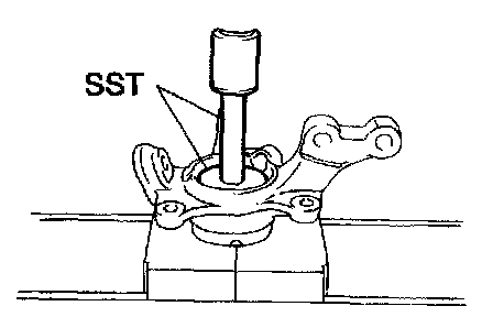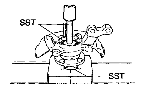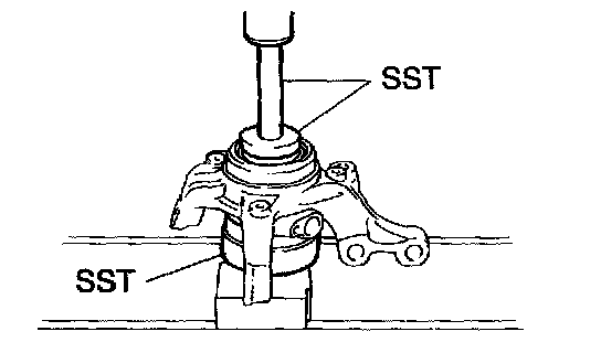 b. Using SST and a press, remove the hub LH bearing from the steering knuckle.