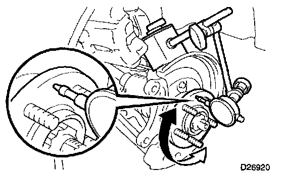 a. Using a dial indicator, check the deviation at the surface of the axle hub outside the hub bolt.