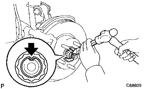 a. Using a chisel and a hammer, stake the hub LH nut.