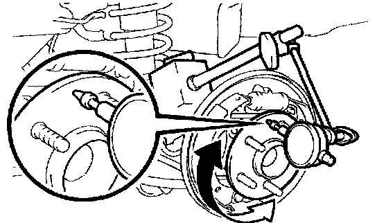 a. Using a dial indicator, check the deviation at the surface of the axle hub outside the hub bolt.