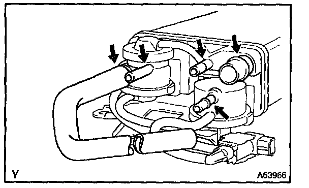 4. Apply vaccum (3.43 kPa, 25.7 mmHg, 1.01 in.Hg) to the purge port, check that the vacuum does not decrease when the air inlet port is closed, and check that the vacuum decreases when the air inlet port is released.