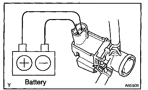 2. Connect the positive (+) and negative (-) leads from the battery to the VSV terminals for the EVAP.