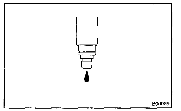 1. In the condition above, disconnect the test probes of the from the battery, and check the fuel leakage from the fuel injector.