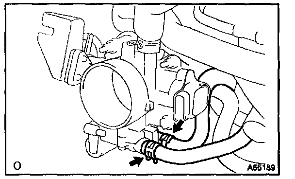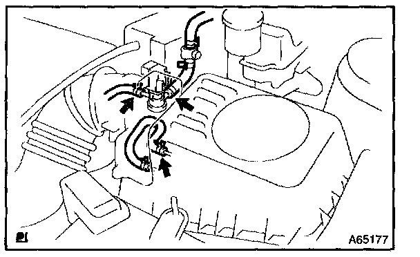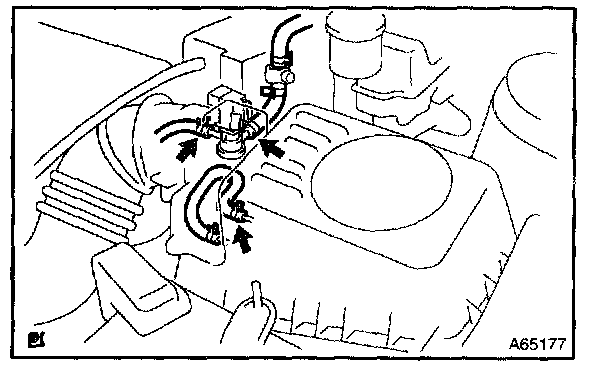 c. Disconnect 3 vacuum hoses, as shown in the illustration.
