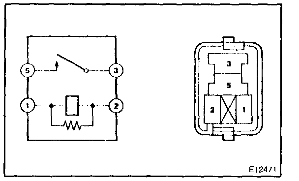 Using an ohmmeter, check that continuity exists between terminals 3 and 5 when the battery voltage is applied across terminals 1 and 2.