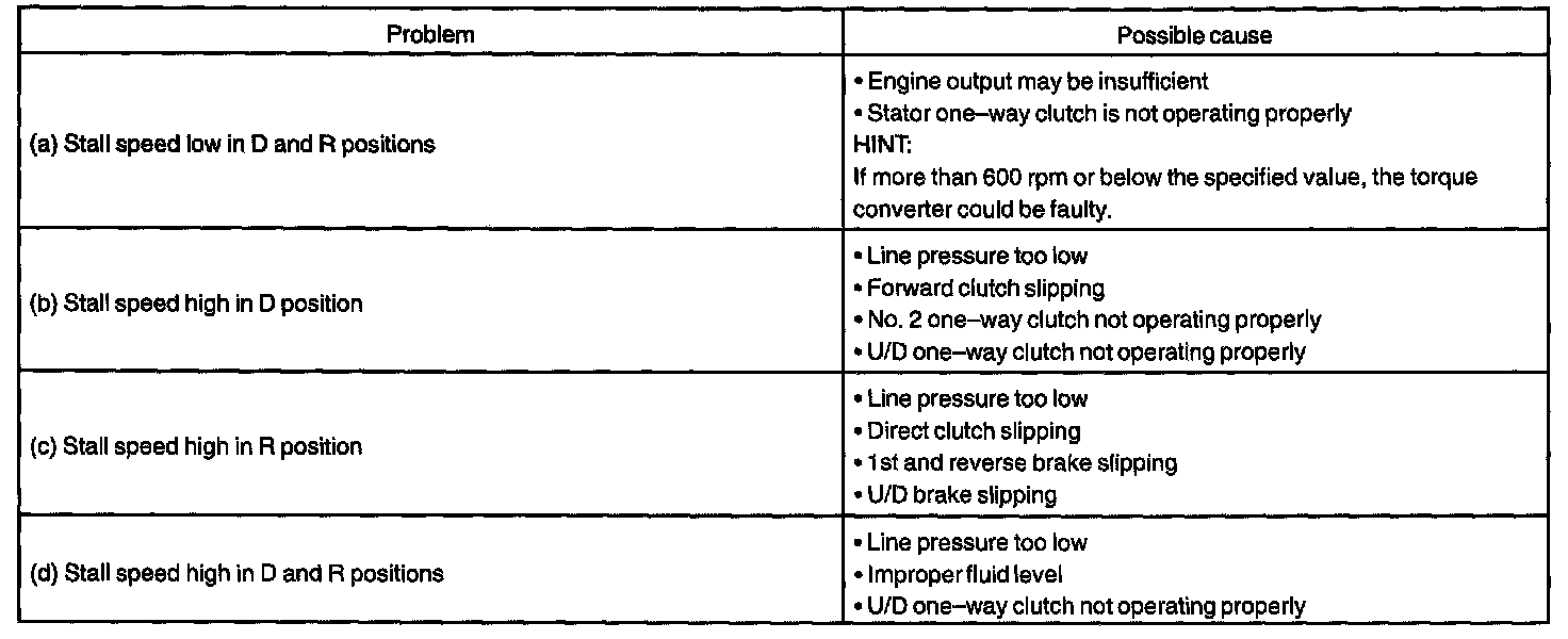 The object of this test is to check the overall performance of the transaxle and engine by measuring the stall speeds in the D and R positions.