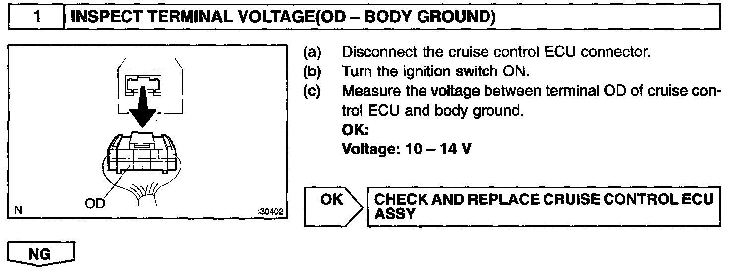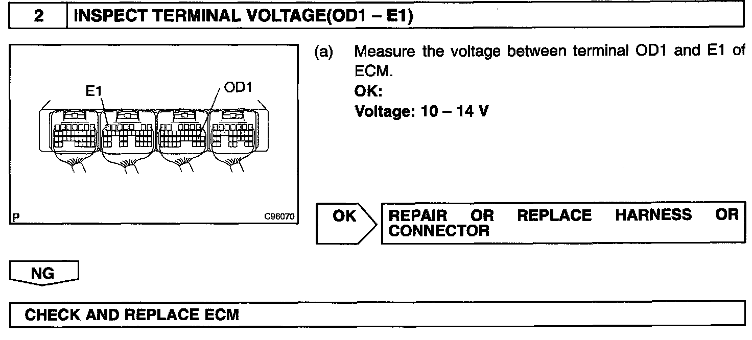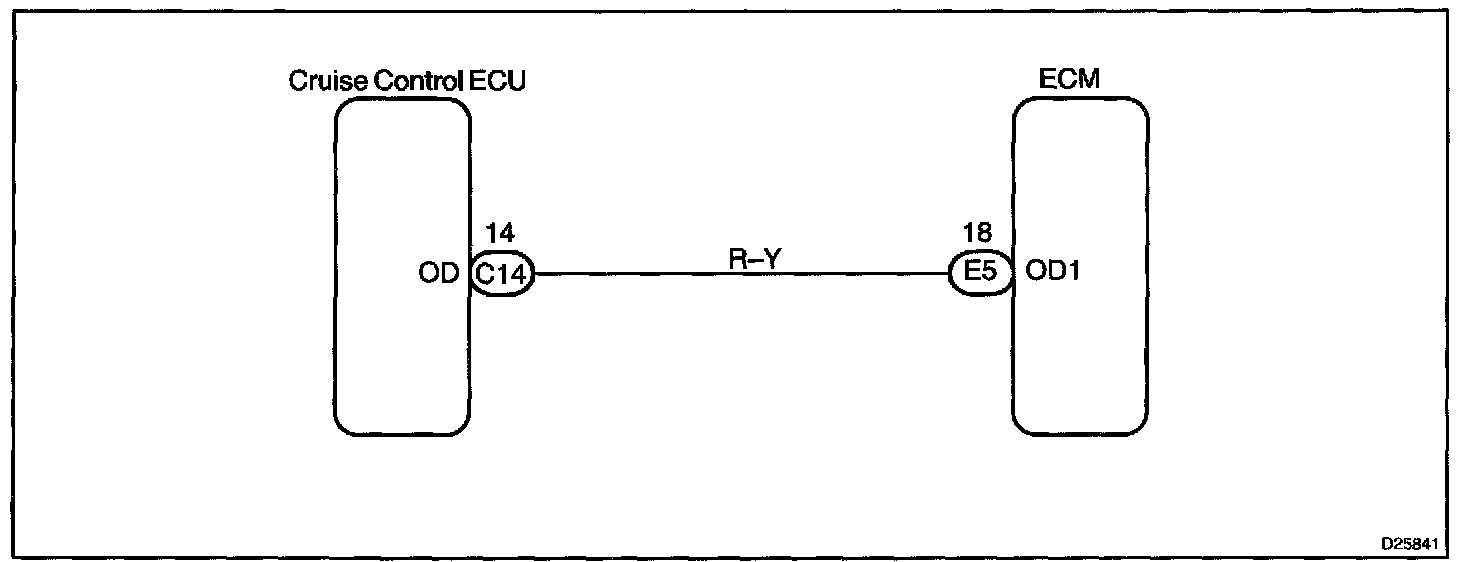 The cruise control ECU sends O/D cut signals to the ECM as necessary and the ECM cancels overdrive shifting until these signals are discontinued.