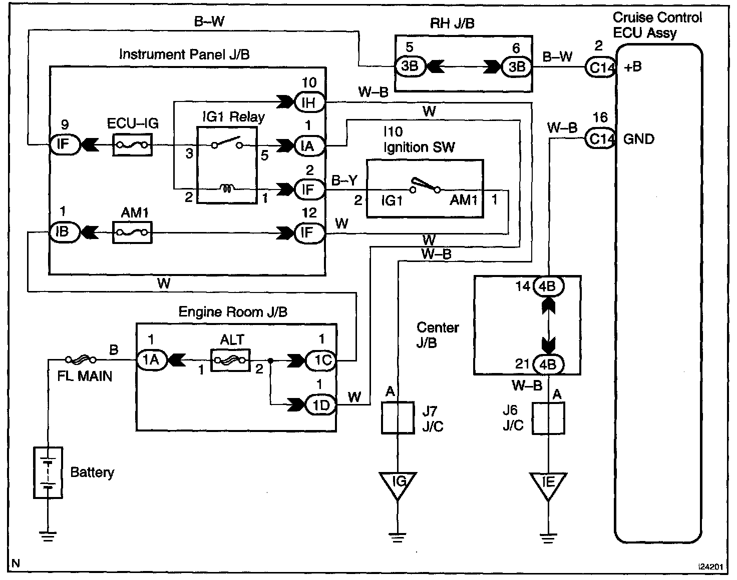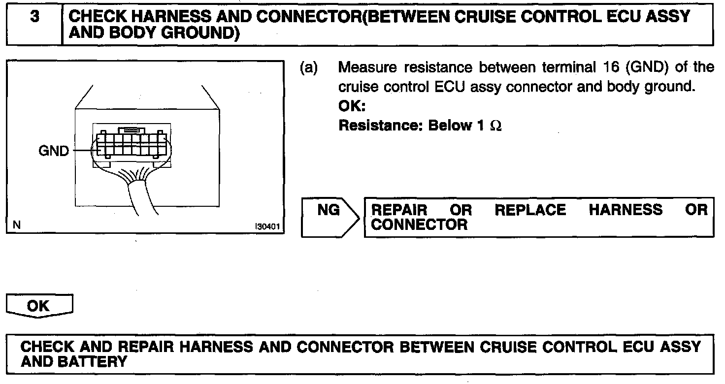 The cruise control ECU assy power source supplies power to the actuator and sensors, etc., when terminal GND and the case of the cruise control ECU assy are grounded.