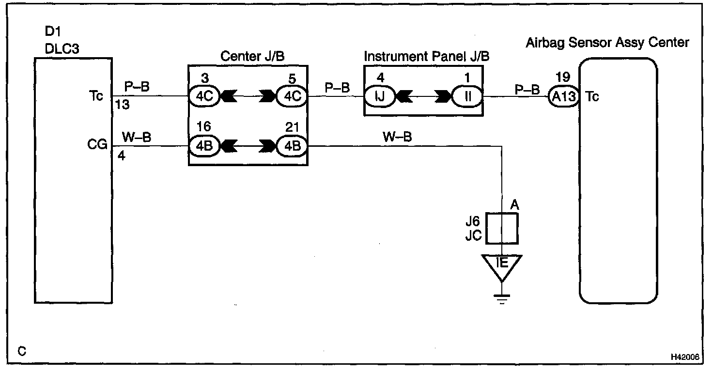 By connecting terminals Tc and CG of the DLC3 the airbag sensor assy center is set in the DTC output mode.