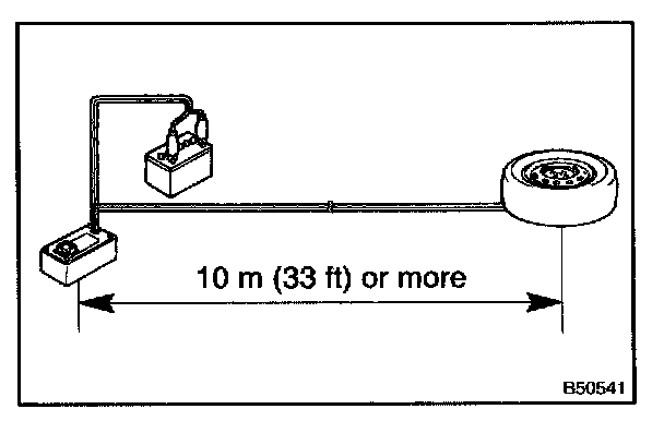 - When activating a front seat outer belt (with seat belt pretensioner), perform the operation at least 10 m (33 ft) away from the front seat outer belt.