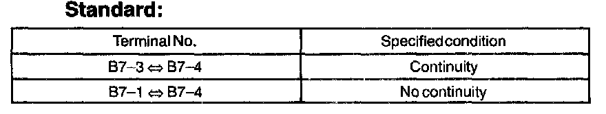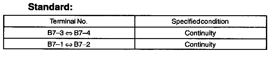 1. Inspect the continuity between the terminals of the connector for the warning switch.