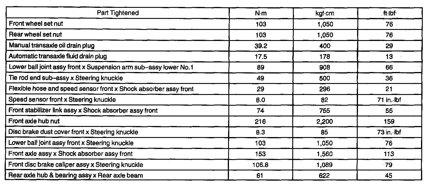 Torque Specification