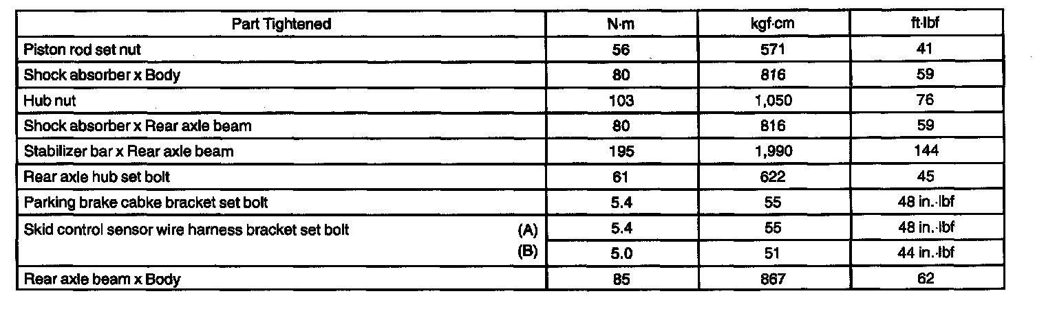 TORQUE SPECIFICATION