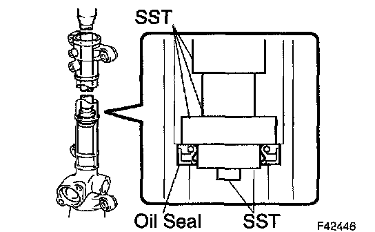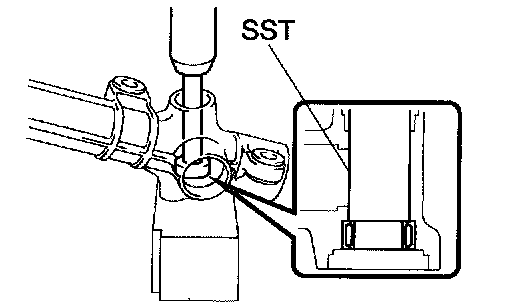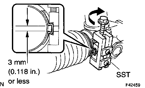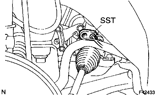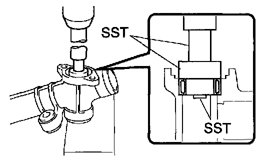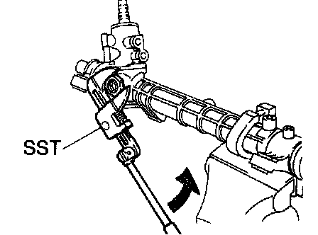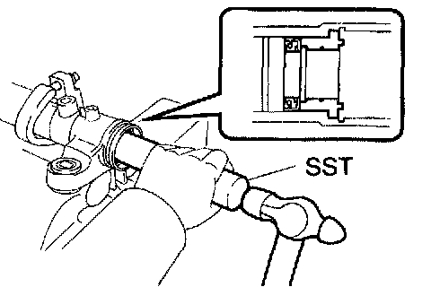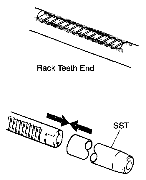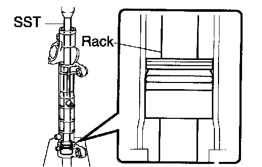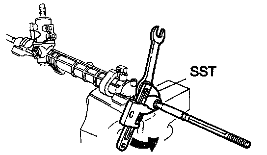 a. Using a spanner, hold the steering rack steadily and using SST, remove the rack end.