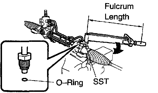 b. Using SST, install the left turn pressure tube to the steering gear assy.
