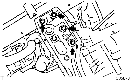 c. Remove the bolt and 3 nuts, disconnect the engine mounting insulator RR from the crossmember.