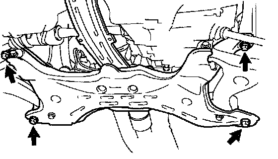c. Lower the transmission jack, remove the front suspension crossmember sub-assy.