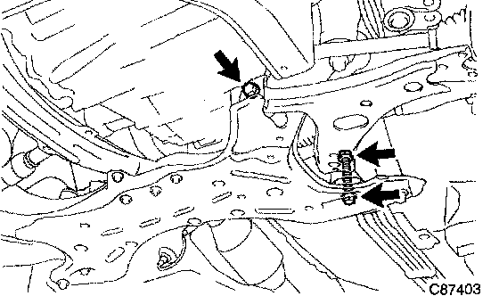 a. Remove the 2 bolts, nut and front suspension arm sub-assy lower No.1 LH from the front suspension crossmember sub-assy.