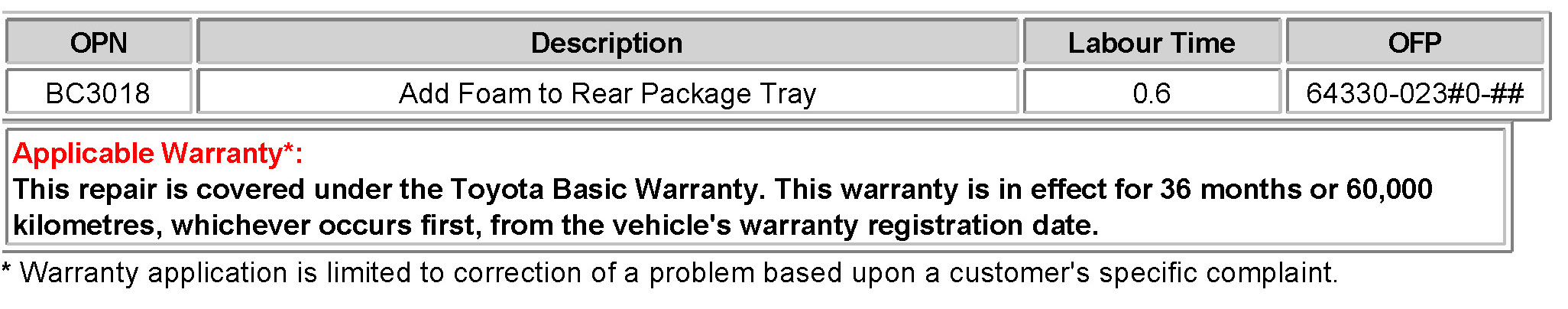 Canada - Interior - Rear Package Tray Noise Repair Tips
