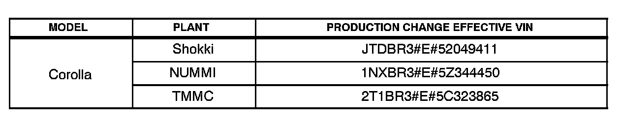 ^ 2003 - 2005 model year Corolla vehicles produced BEFORE the Production Change Effective VINs shown.