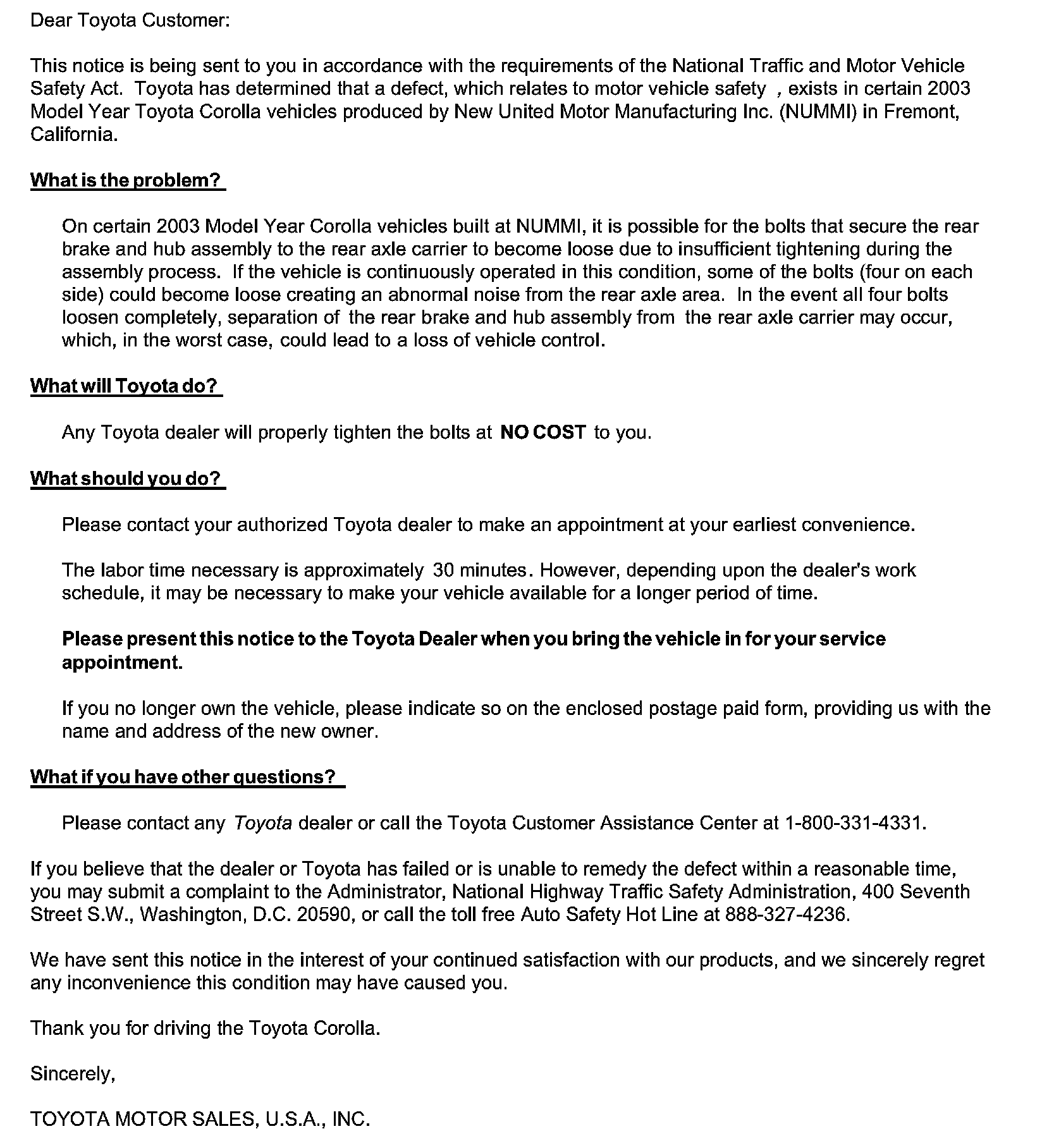 Recall - Rear Axle Hub/Carrier Bolt Torque