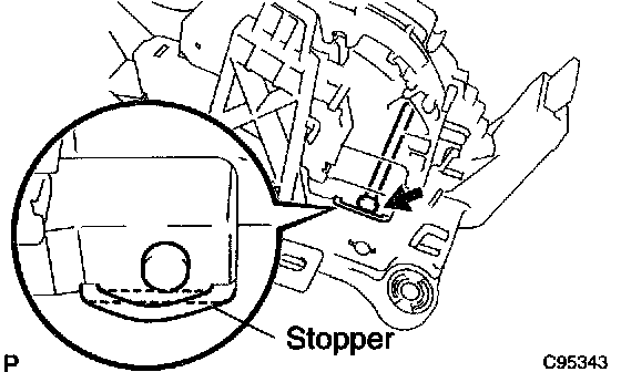 2. Set the accessory tool to the shift lock control unit assy as shown in the illustration.