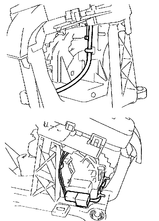 b. Connect the 2 wire harness clamps to the shift lever plate.