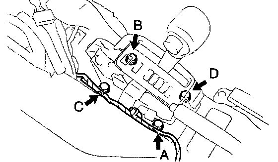 NOTICE: Pay attention not to apply unnatural load to transmission control switch wire harness.