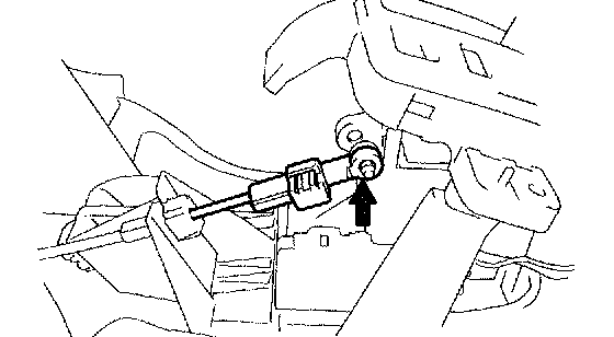 b. Using a screw driver, disconnect the parking lock cable from the floor shift assembly.