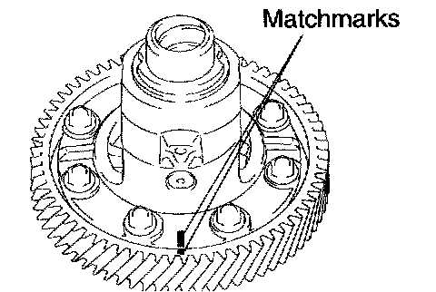 a. Place matchmarks on the front differential ring gear and front differential case.