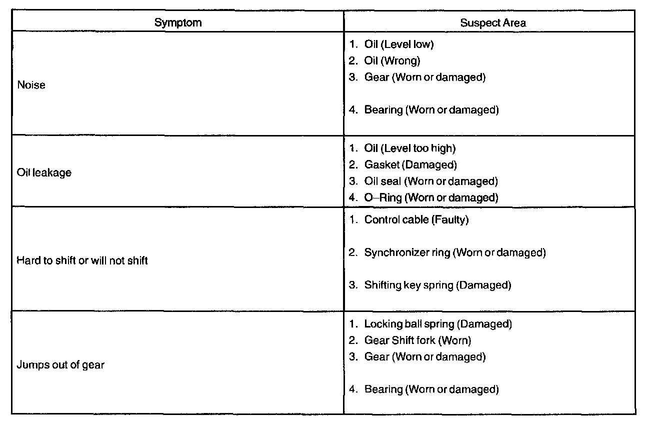 Use the table above to help you find the cause of the problem. The numbers indicate the priority of the likely cause of the problem. Check each part in order. If necessary, replace parts.