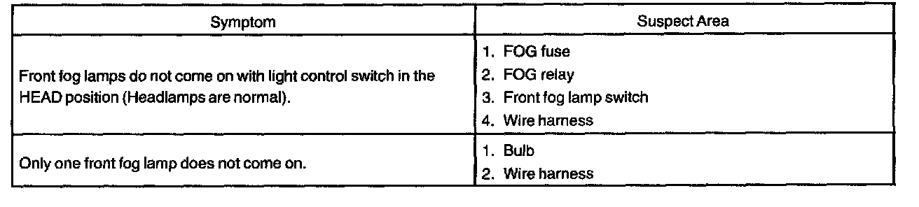 Problem Symptoms Table - Front Fog Lamp System: