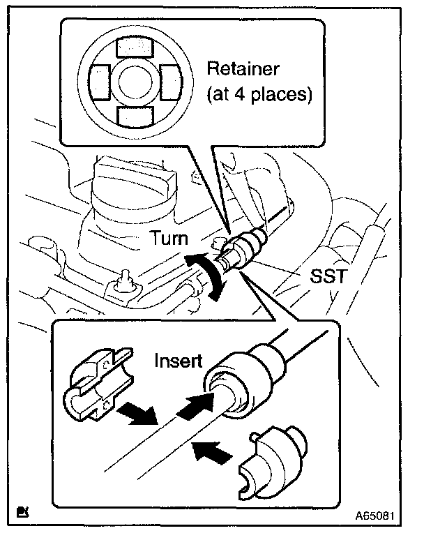 2. Turn the SST, align the retainers inside the connector with the SST chamfered parts and insert the SST into the connector.