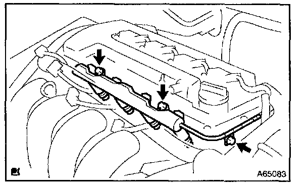 b. Install the fuel delivery pipe together with the 4 fuel injectors with the 3 bolts.