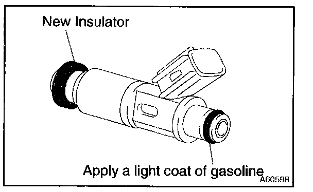 b. Apply a light coat of spindle oil or gasoline to a new O-ring, and install it to the each fuel injector.