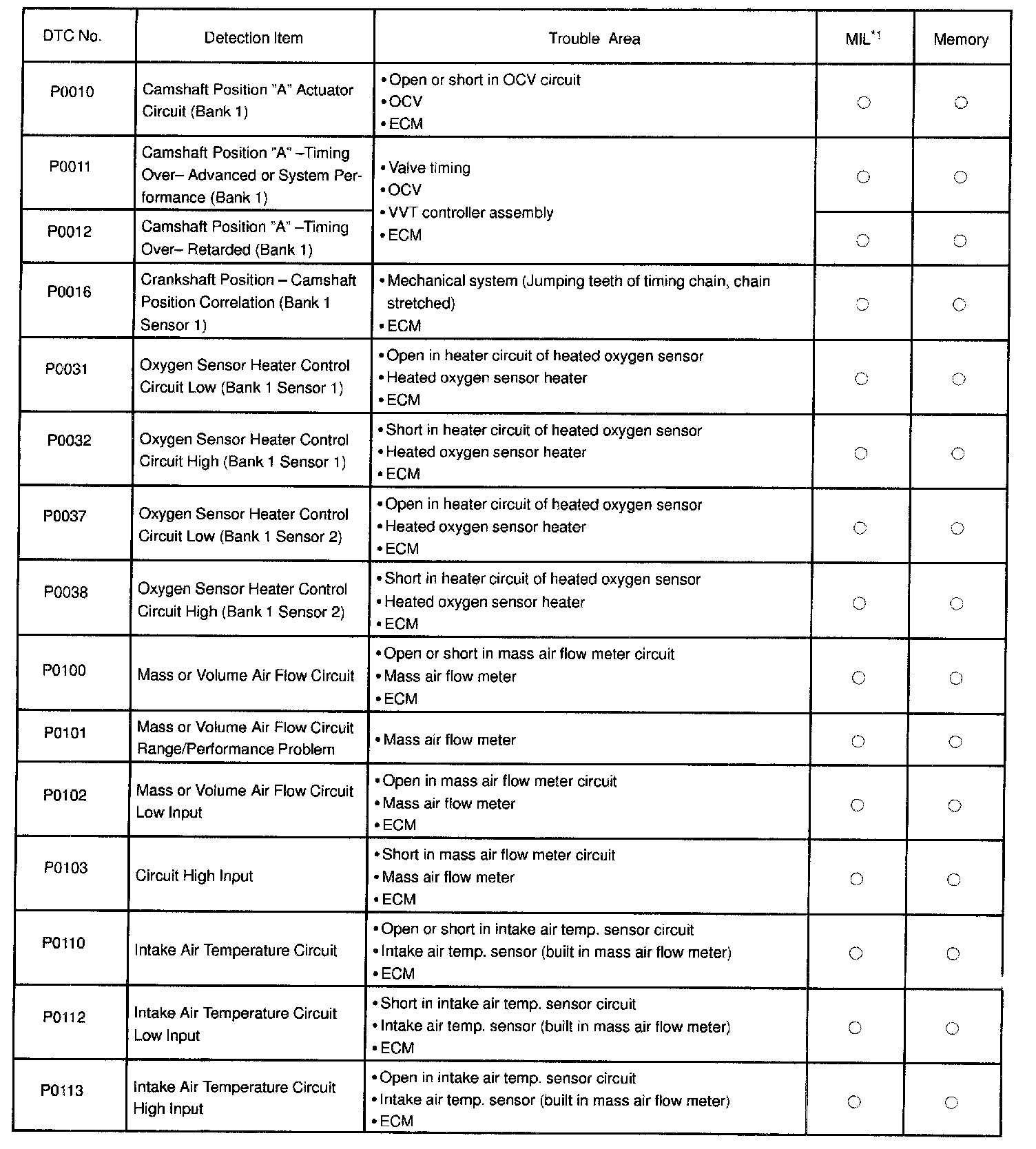 DIAGNOSTIC TROUBLE CODE CHARTP0010 - P0113: