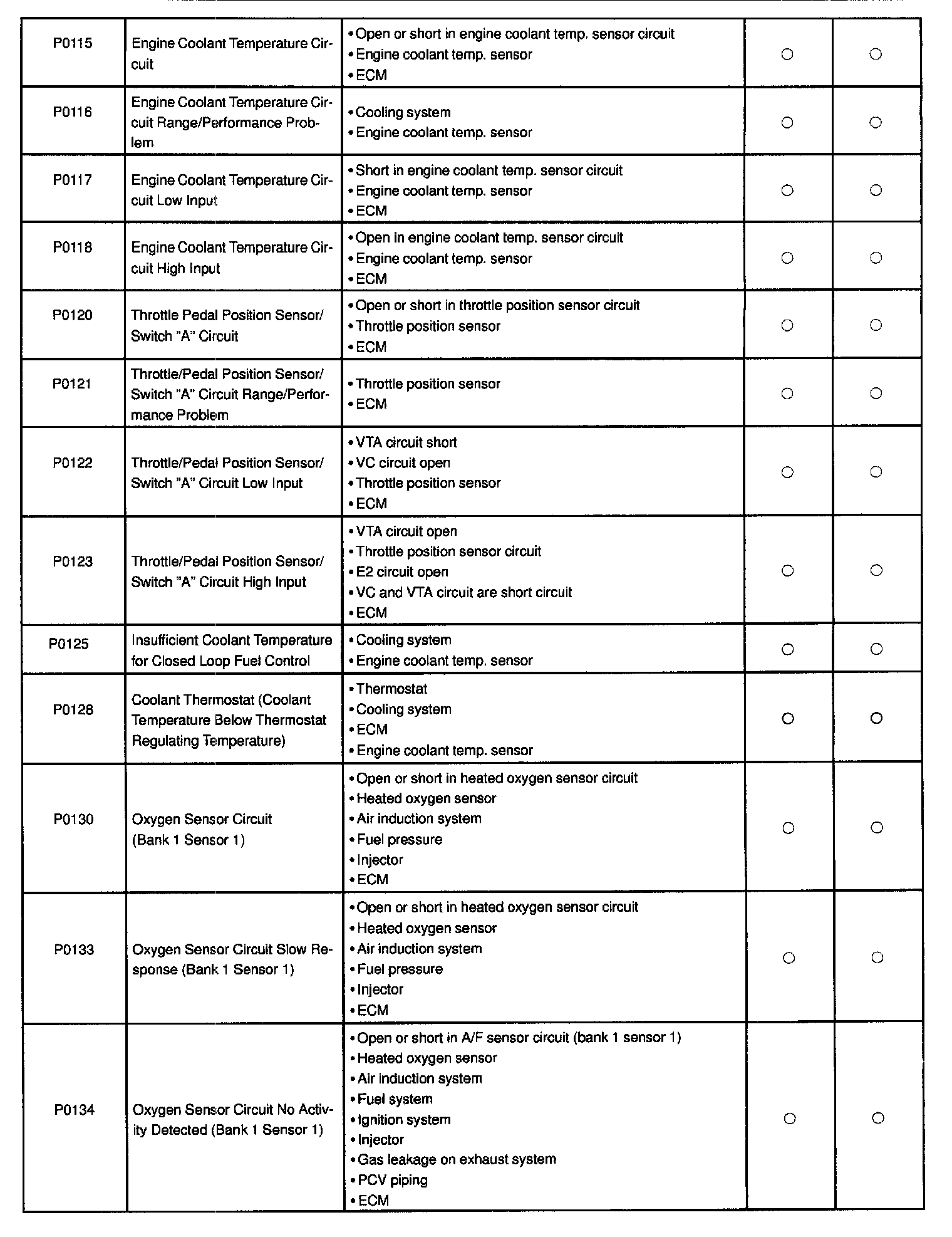 P0115 - P0134: