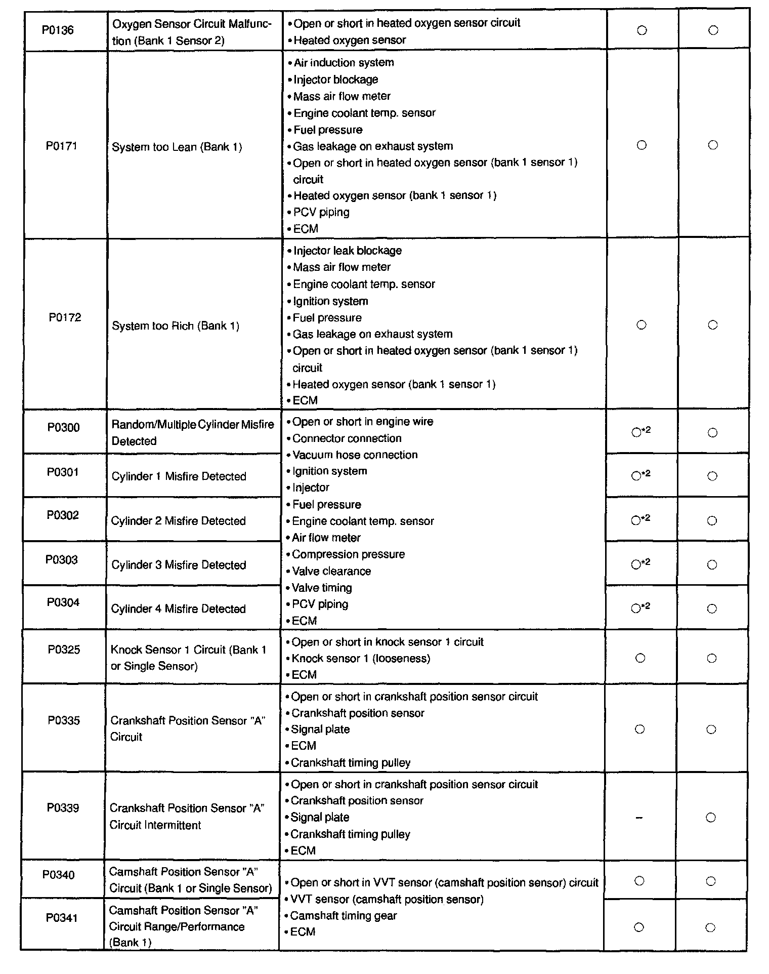 P0136 - P0341: