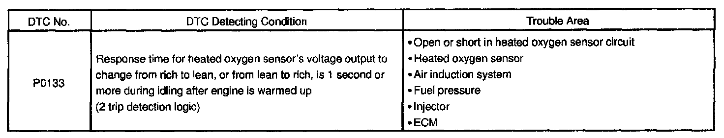 DTC P0133 Oxygen Sensor Circuit Slow Response (Bank 1 Sensor 1)CIRCUIT DESCRIPTION