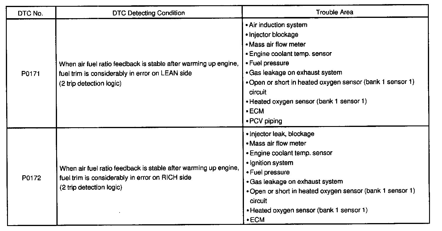 DTC P0171 System too Lean (Bank 1)CIRCUIT DESCRIPTION