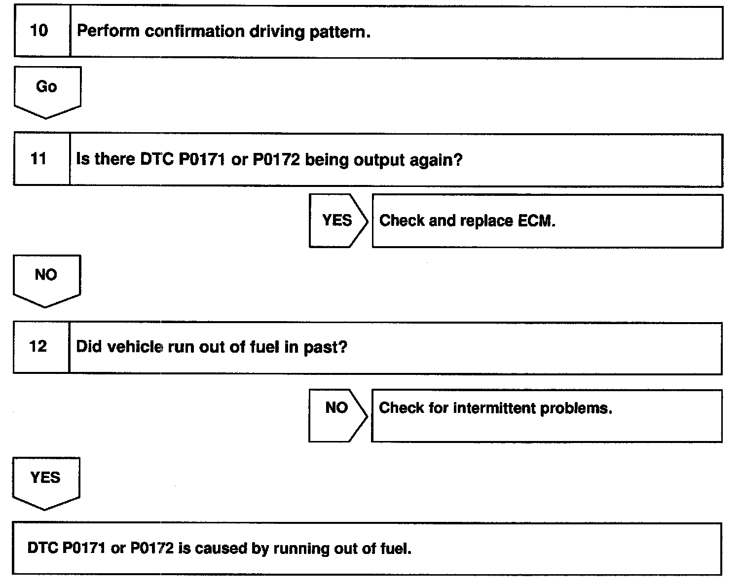 - If the vehicle runs out of fuel, the air-fuel ratio is LEAN and DTC P0171 is recorded. The MIL then comes on.